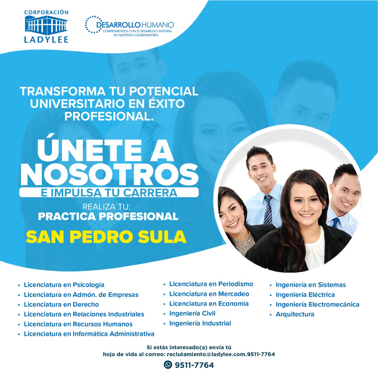 Impulsa tu carrera profesional en Corporación Lady Lee. Si estas interesado en realizar tu practica profesional aplica con nosotros.