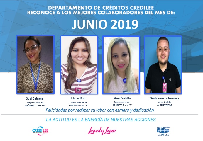 Felicitamos a nuestros mejores colaboradores del departamento de crédito en el mes de junio.