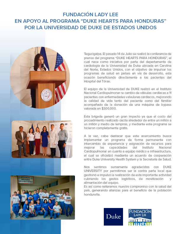 El pasado 14 de Julio realizamos conferencia de prensa del programa Heart for Honduras de Duke University, estamos muy felices de apoyar este gran proyecto. ¡SomosCLL!