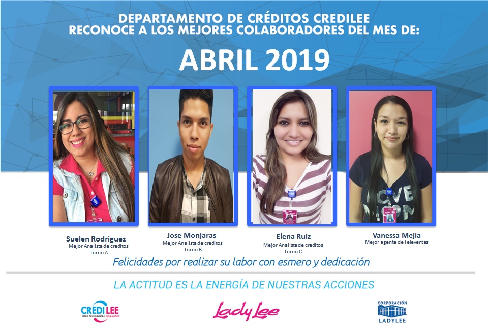 Felicitamos a los mejores colaboradores del departamento de Cobros de Lady Lee en abril. 👏 ¡SomosCLL!
