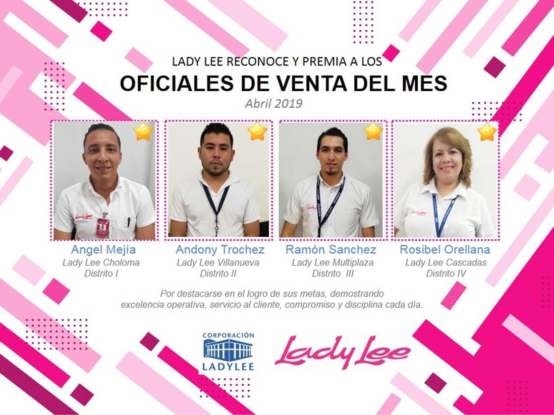Felicitamos los mejores Oficiales de Ventas de Lady Lee Honduras en el mes de abril. 👏 ¡SomosCLL!