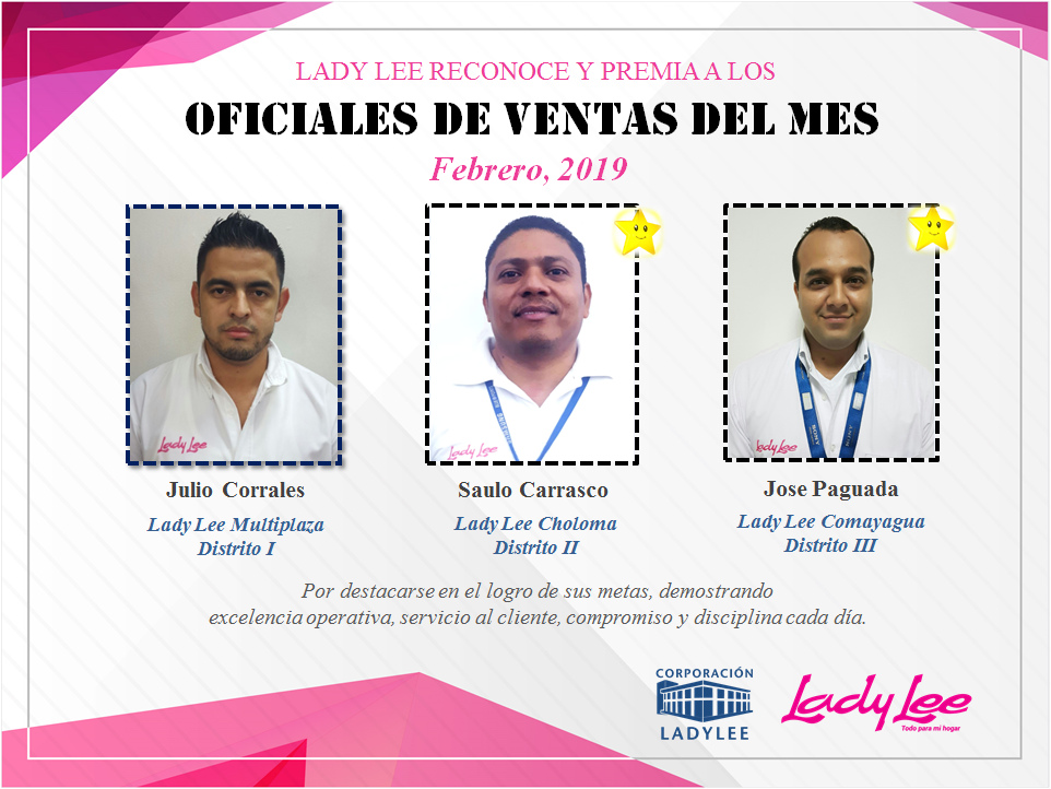 Felicitamos a nuestros oficiales de ventas de Lady Lee Honduras en el mes de febrero.