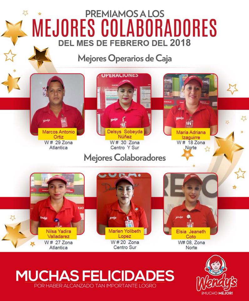 Wendy’s Honduras Premia a los Colaboradores del Mes para Febrero 2018 ¡Muchas Felicidades! ?#SomosCLL