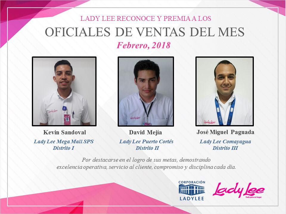 Lady Lee Honduras Premia a los Oficiales de Ventas del Mes de Febrero de 2018