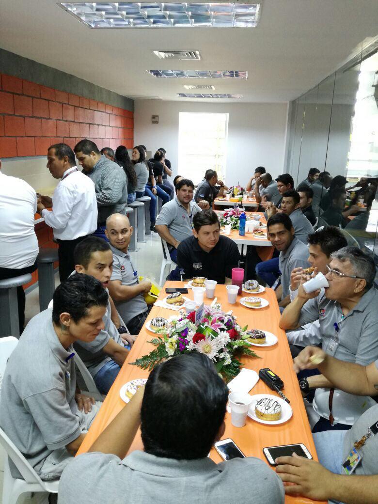 El equipo de seguridad corporativa celebrando a los cumpleañeros del mes en Terraza “Las Banderas”, un espacio social adecuado para que nuestros ejecutivos compartan y disfruten en equipo ?? #SomosCLL