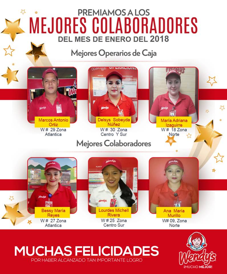 Wendy’s Honduras Premia a sus mejores colaboradores del Mes de Enero, 2018