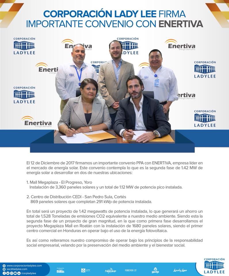 Firmamos importante convenio con Enertiva Honduras – Energía Alternativa, empresa líder en el mercado de energía solar y cogeneración en Centroamérica ??? #SomosCLL