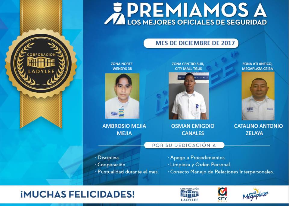 Premiamos a los mejores oficiales de seguridad del Mes de Diciembre de 2017 ¡Muchas felicidades!