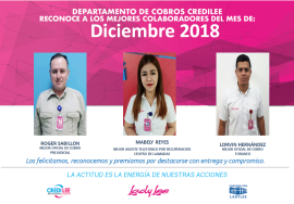 Premiamos a los mejores colaboradores del departamento de cobros Credilee en el mes de Diciembre. 👏 #SomosCLL Leer mas