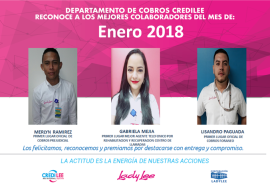 Mejores Colaboradores del Mes de Enero del departamento de CrediLee-Cobros ¡Muchas Felicidades! Leer mas