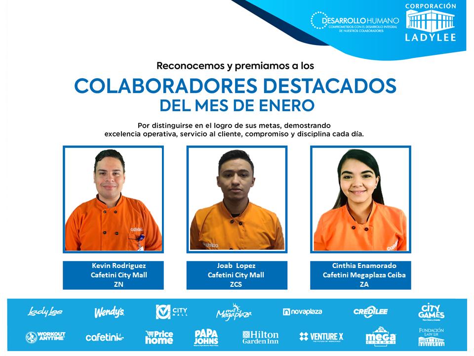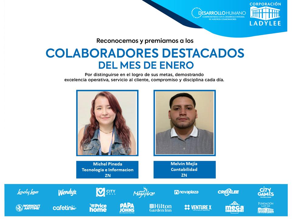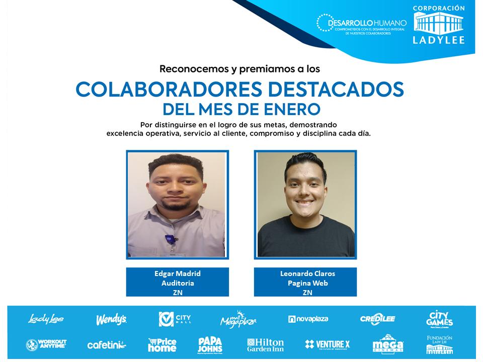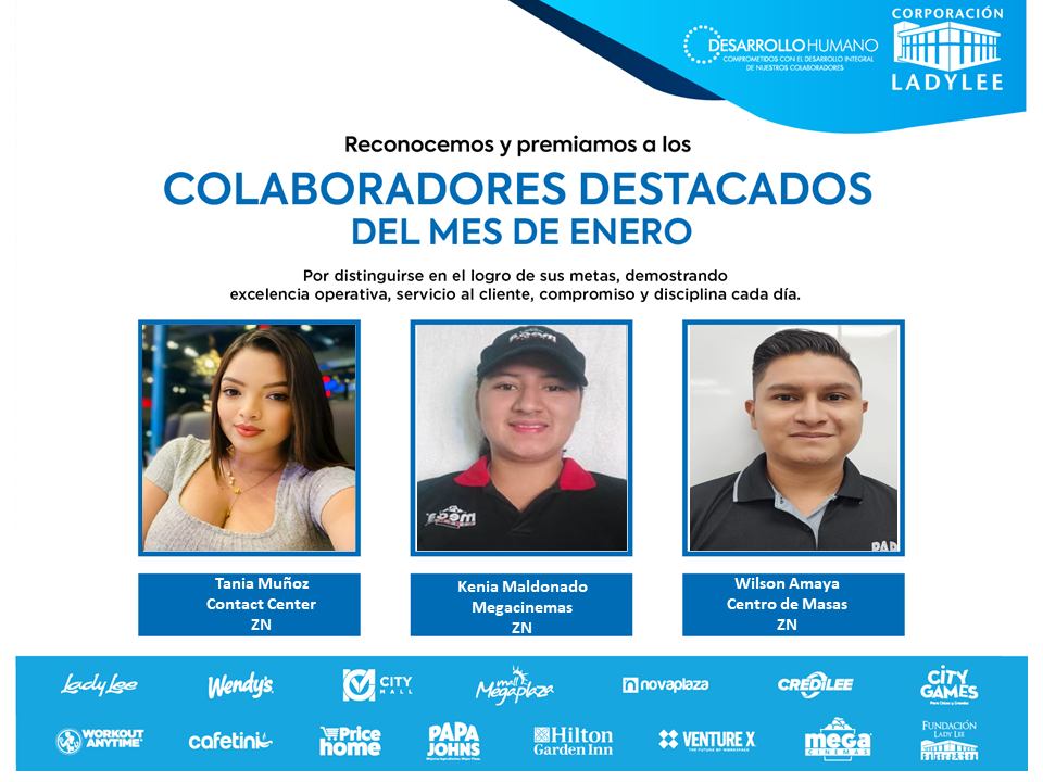 Aplaudimos con orgullo a los colaboradores destacados del mes de enero cuyo esfuerzo y dedicación brillan con fuerza, llevándonos hacia la excelencia.