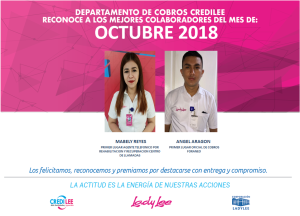 Colaboradores Cobros CrediLee-Octubre 13 de noviembre de 2018 Abdiel Licona No Comment 262 Views Compartir en Felicidades a los mejores colaboradores de Cobros de CREDILEE del mes de Octubre 2018