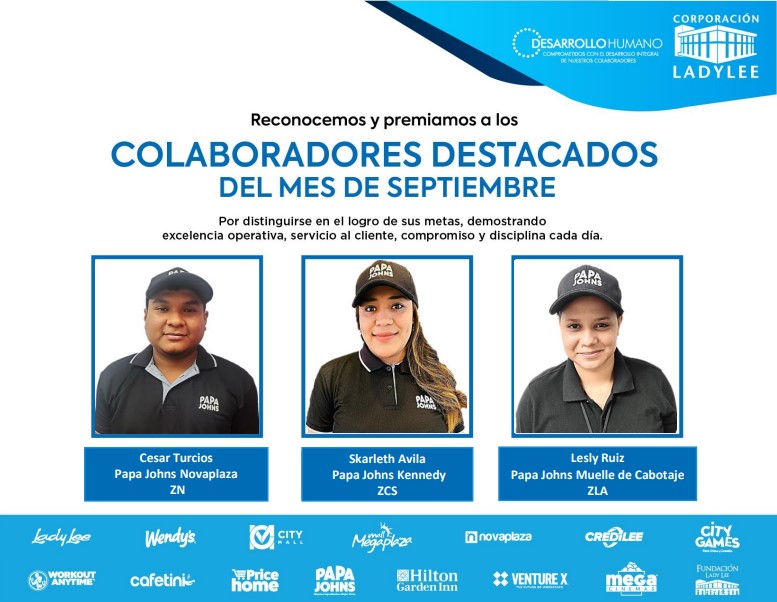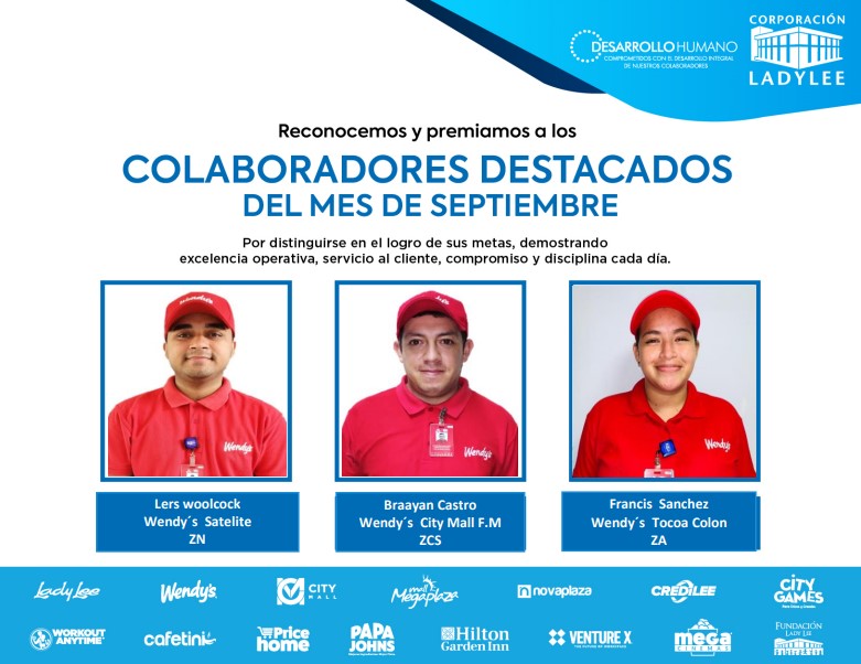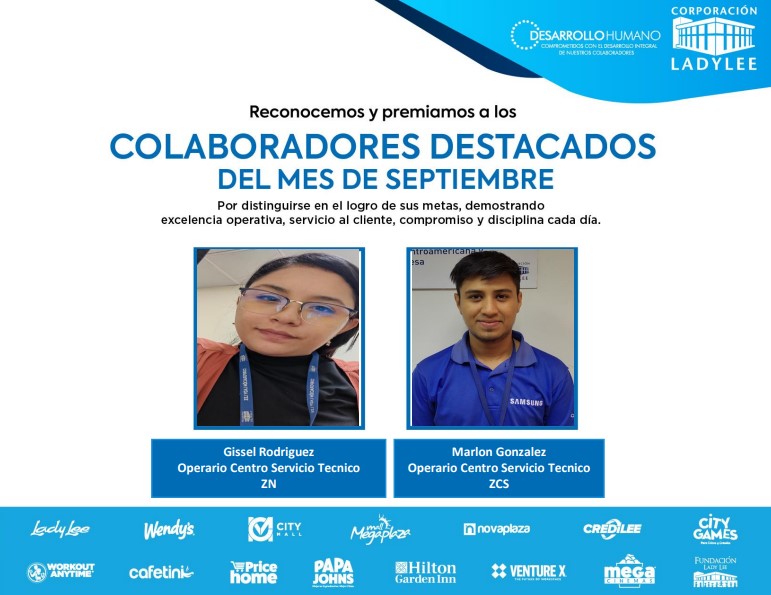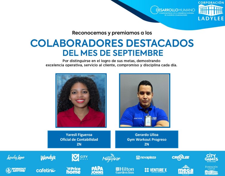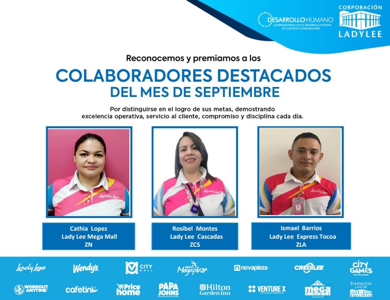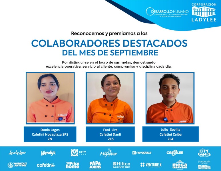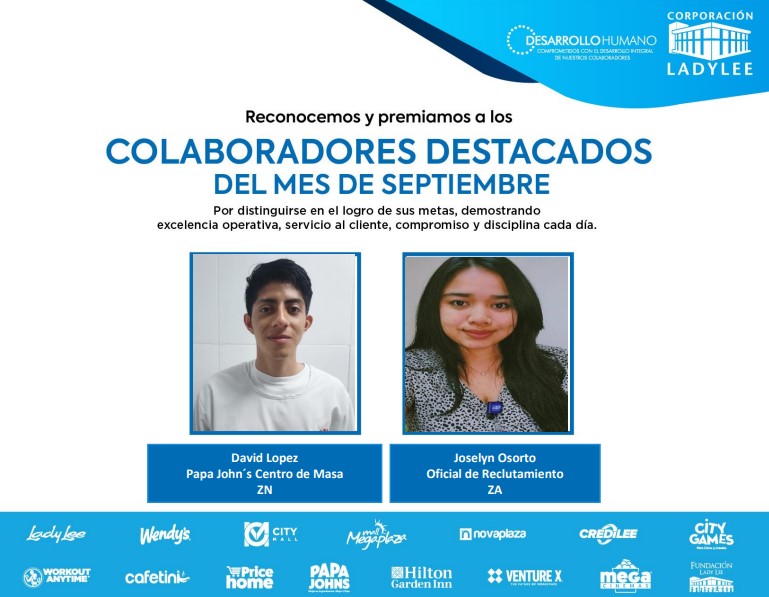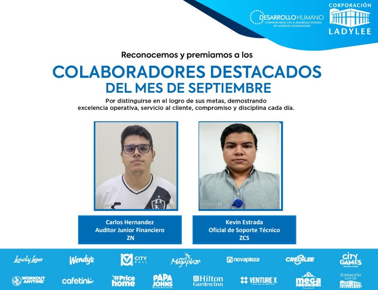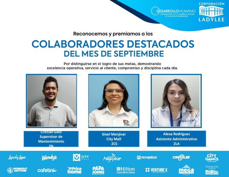 Es un placer compartir con todos ustedes los colaboradores destacados del mes de septiembre. ¡Su compromiso y excelencia son ejemplares!