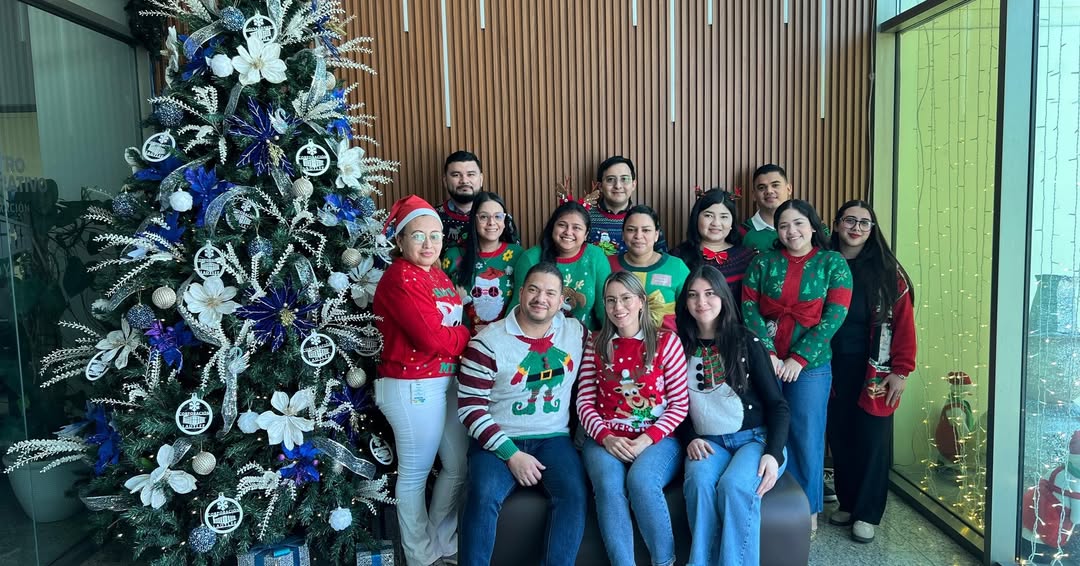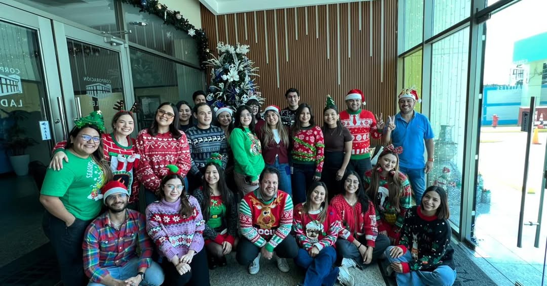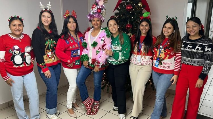Como parte de las actividades navideñas, nuestros colaboradores participaron con entusiasmo en la divertida dinámica del “Suéter Loco”, una iniciativa que llenó nuestras oficinas de color, creatividad y espíritu festivo. Cada participante aportó su estilo único, transformando la jornada en un espacio de alegría, risas y convivencia.