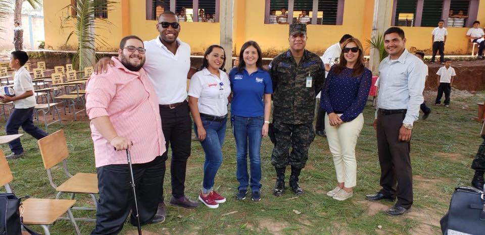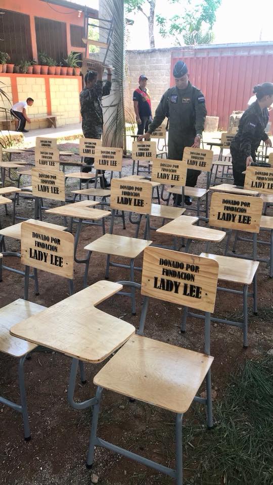 Donación de pupitres a la Escuela Guadalupe Ulloa, la cual se complementa con la donación de balones de la Fundación Kick for Nick, y el apoyo de la base aérea Soto Cano, JTF-Bravo y Organización de Cooperación Ayuda y Desarrollo (OCAD)