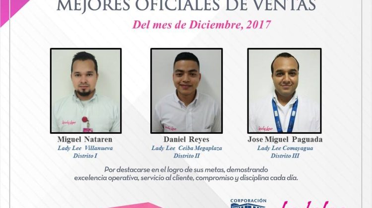 Lady Lee Honduras Premia a sus mejores Colaboradores del Mes de Diciembre de 2017