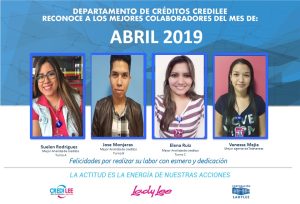 Mejores colaboradores de crédito en abril 13 de mayo de 2019 Abdiel Licona No Comment 380 Views Compartir en Felicitamos a nuestros mejores oficiales de crédito en el mes de abril. 👏 ¡SomosCLL!