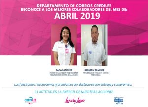 Mejores colaboradores del departamento de Cobros de Lady Lee en abril 16 de mayo de 2019 Abdiel Licona No Comment 380 Views Compartir en Felicitamos a los mejores colaboradores del departamento de Cobros de Lady Lee en abril. 👏 ¡SomosCLL!