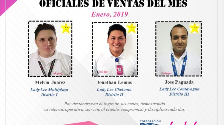 Mejores colaboradores- Lady Lee Enero 15 de febrero de 2019 Abdiel Licona No Comment 282 Views Compartir en Felicidades a nuestros colabordores del mes de Enero en Lady Lee Honduras 👏