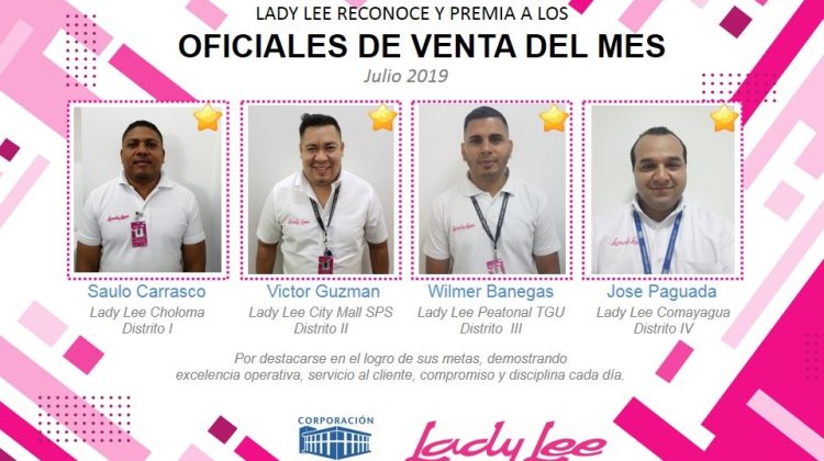 Mejores oficiales de ventas de Lady Lee en julio 12 de agosto de 2019 Abdiel Licona No Comment 403 Views Compartir en Felicitamos a los mejores oficiales de venta de Lady Lee en el mes de julio.