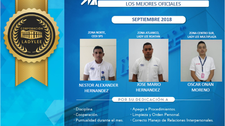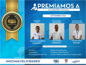 Mejores Oficiales-Septiembre 19 de octubre de 2018 Abdiel Licona No Comment 393 Views Compartir en Felicitemos a los mejores Oficiales del mes de Septiembre. #SomosCLL
