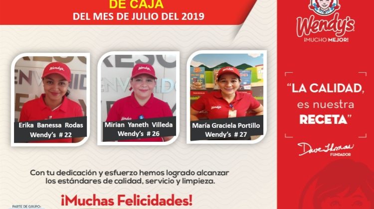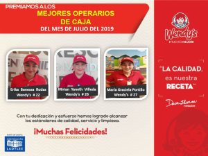 Mejores operarios de caja de Wendy’s en julio 6 de agosto de 2019 Abdiel Licona No Comment 289 Views Compartir en Felicitamos a nuestros mejores operarios de caja de Wendy’s en el mes de julio. ¡SomosCLL!