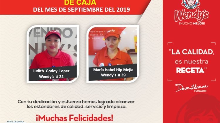 Mejores Operarios de Caja de Wendys en Septiembre 17 de octubre de 2019 Abdiel Licona No Comment 260 Views Compartir en Felicitamos a los mejores operarios de caja de Wendy’s en el mes de septiembre. ¡Somos CLL!
