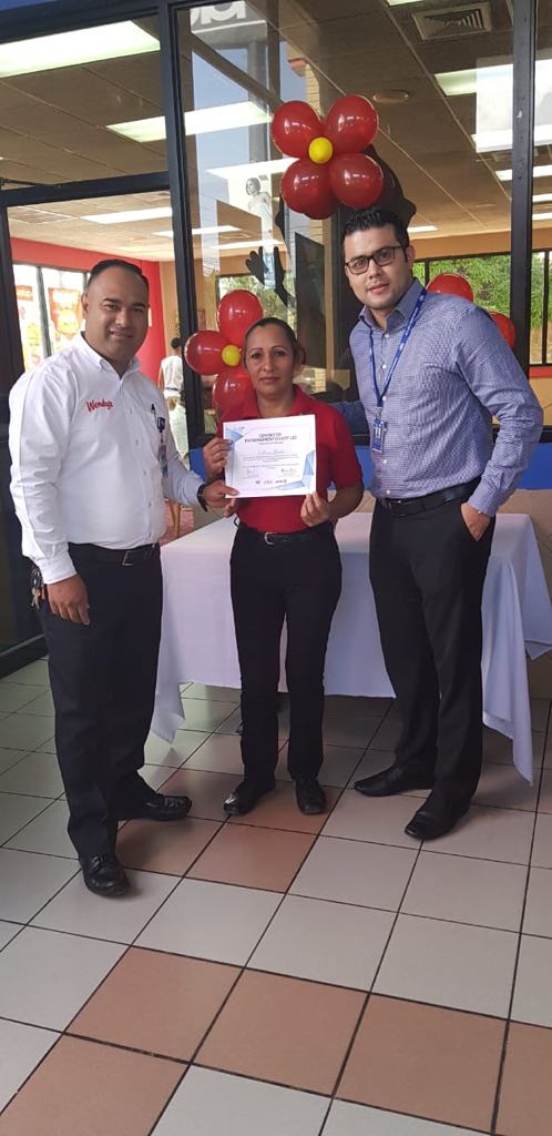 Ceremonia de Certificación al Equipo Wendy’s de Comayaga en el Módulo ABC de Servicio al Cliente.