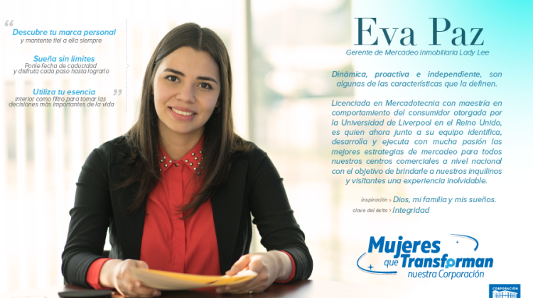 Te presentamos a nuestra #EjecutivaCLL de esta semana: Eva Paz, a quien podemos describir como alegre, analítica, determinada, íntegra, orientada a resultados pero sobre todo apasionada. Ella es quien junto a su equipo de trabajo desarrolla y ejecuta las mejores estrategias de mercadeo para City Mall Honduras y Megaplaza Honduras, ofreciéndole a la población hondureña una experiencia de entretenimiento, diversión, y compras única e inigualable.