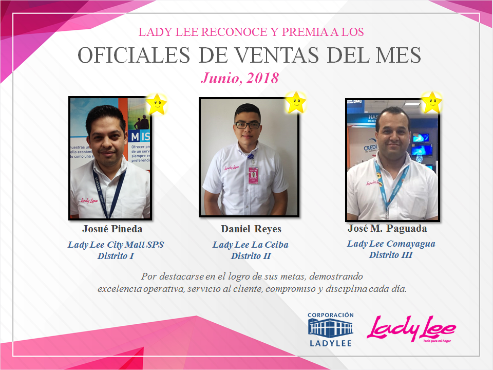 Oficiales de Ventas del Mes de Junio de Lady Lee Honduras ¡Muchas felicidades! #SomosCLL