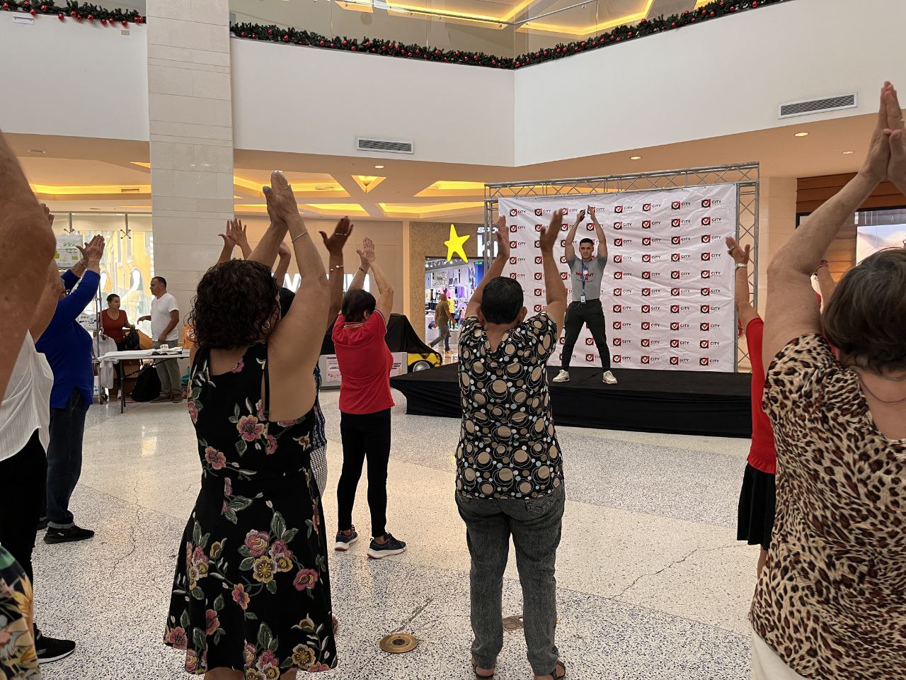 En celebración al Día del Adulto Mayor, 300 personas mayores visitaron la plaza central de City Mall Alajuela, para disfrutar de diferentes actividades. Se impartió una clase especial por parte de Workout Time, además, se ofrecieron descuentos de mercadería en los locales, un bingo con premios de nuestros condóminos, y una presentación artística con Sello de Oro Alajuela. Una de las actividades más esperadas fue un especial baile con el grupo musical SOMOS 65, además de una feria de emprendimientos de adultos mayores de la zona. También el Club de Leones Aeropuerto (Nateen) organizó un “Pañatón”. Prensa Nacional hizo su trasmisión en vivo para el programa “De Boca en Boca”, bailaron y disfrutaron a más no poder, una actividad que sin duda hizo pasar a los presentes un rato muy ameno.