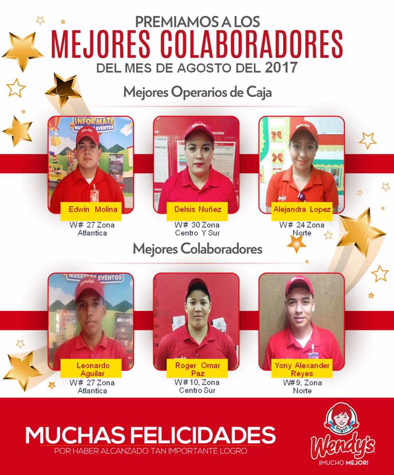 Wendy’s Honduras Reconoce a sus Colaboradores 18 de septiembre de 2017 Abdiel Licona No Comments 273 Views Compartir en Wendy’s Honduras Reconoce a sus Colaboradores